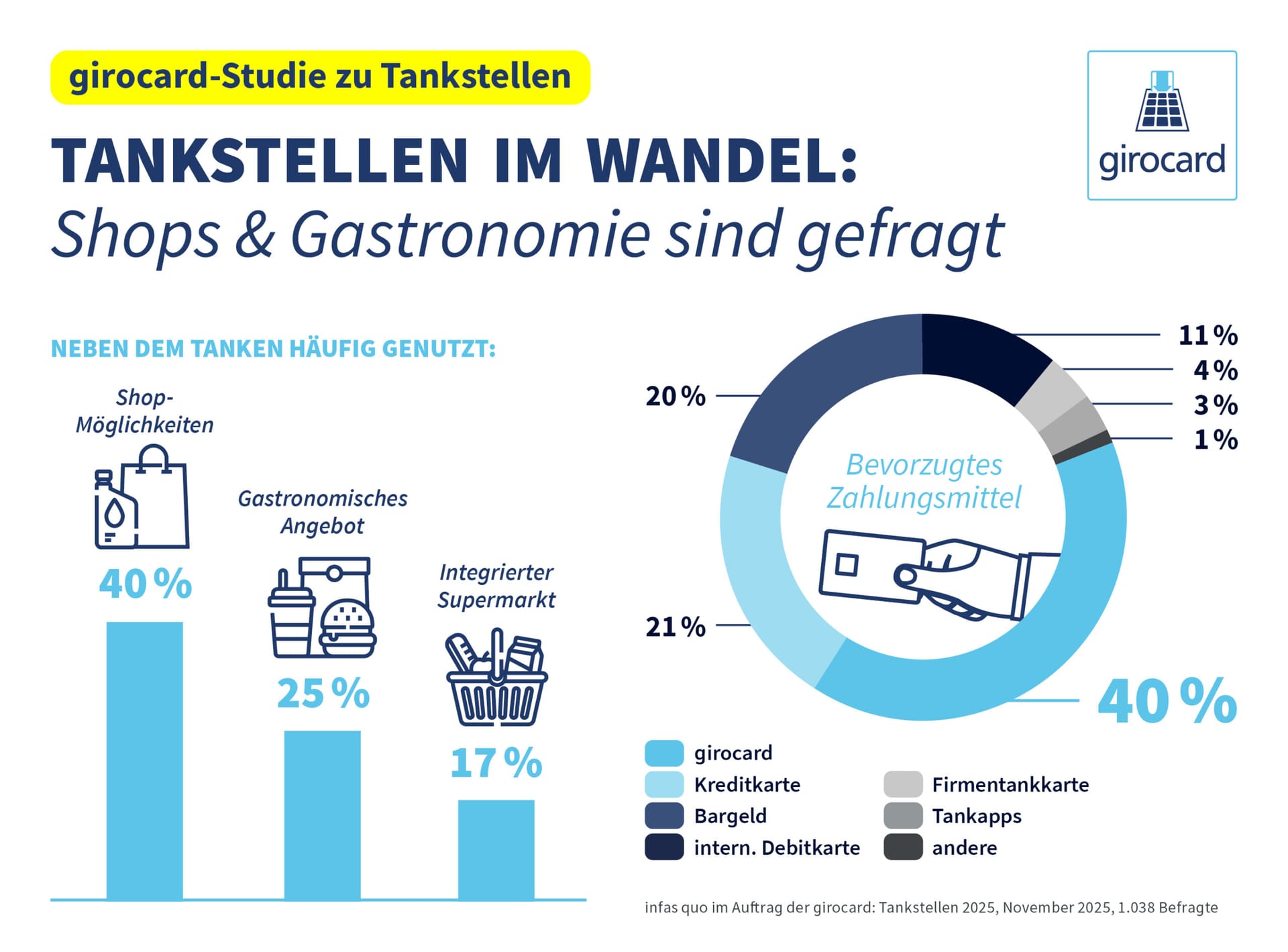 ¹ infas quo im Auftrag der girocard: Tankstellen 2025, Repräsentative Online-Befragung, November 2025, 1.038 Befragte