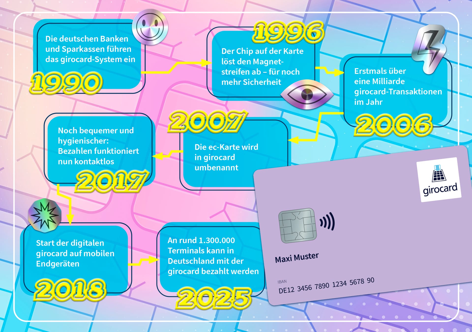 Bezahlen mit Karte und PIN seit 1990 möglich • girocard nach wie vor beliebteste Bezahlkarte in Deutschland • Debitkarte der Banken und Sparkassen an rund 1,3 Millionen Terminals akzeptiert
